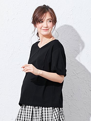 a.i.n (アイン) マタニティ 授乳口付き T/C天竺 汗染み防止加工 バックリボン トップス 授乳服 産前 産後 半袖 tシャツ L ブラック 22445 22445170