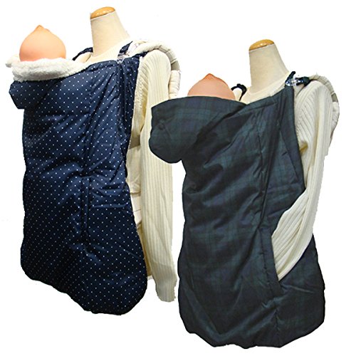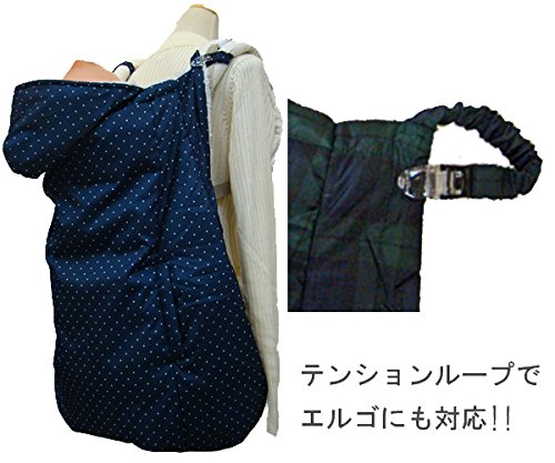 エルゴ対応 クロスプラス 授乳兼用<BR>タフタ ダウン 裏ボア 足元カバー 3WAY リバーシブル ワンタッチケープ 簡易亀甲・(ママコート) (紺×白 水玉)