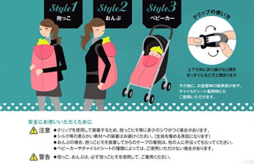 べビーキャリーに対応するワンタッチケープ。従来型の機能はそのままにベビーキャリーの特徴の幅広肩に対応。