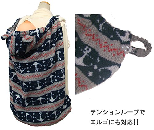 エルゴ対応 クロスプラス 授乳兼用 タフタ JQボア アルミ蒸着シート使用 3WAY リバーシブル ワンタッチケープ 簡易亀甲・(ママコート) (グレー×錨柄)