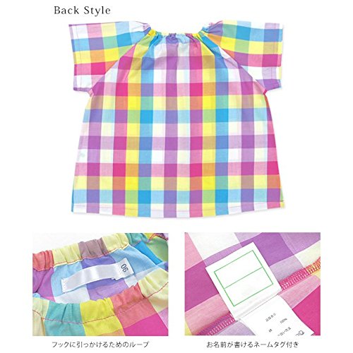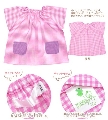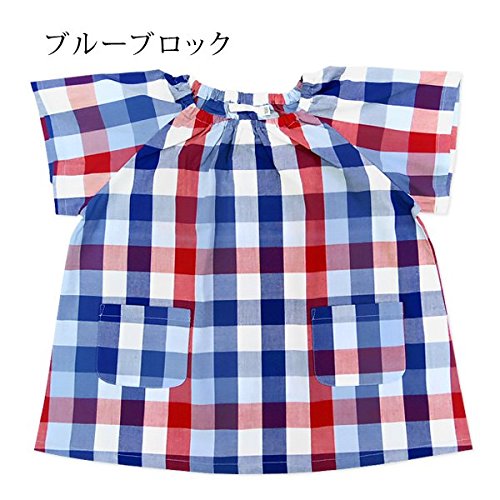 よつば洋品店オリジナル 半袖チェック柄スモック (120 ブルーブロック)