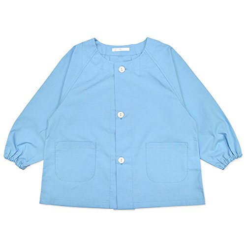 よつば洋品店オリジナル 長袖無地ボタンスモック 前開きタイプ (100/ブルー) 【QO-YY253】