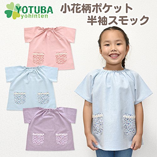よつば洋品店オリジナル 小花柄ポケット半袖スモック (110/ピンク) 【QO-YY286】