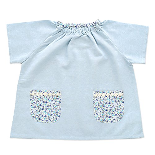 よつば洋品店オリジナル 小花柄ポケット半袖スモック (100/サックス) 【QO-YY286】