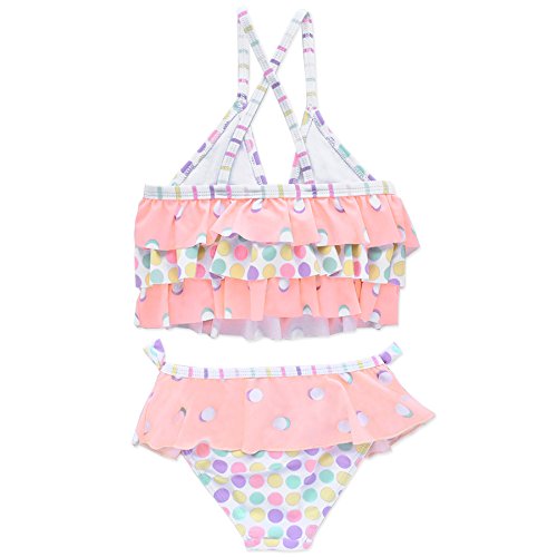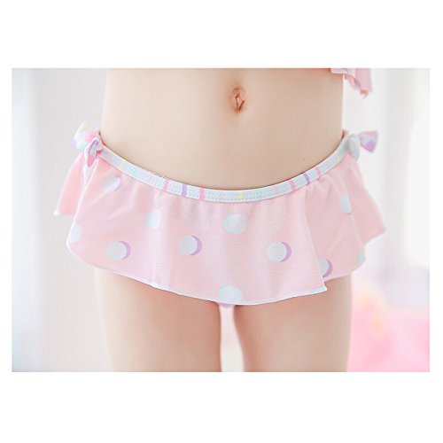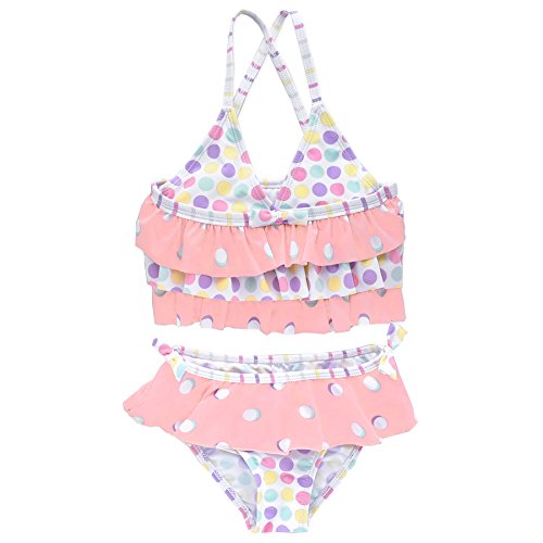- パステルカラーのフリルがかわいいビキニタイプの水着です。2WAY素材なので、体にフィットしながらも、着心地バツグン!ドット柄と女の子らしいフリルがポイント。スイミングやプール、海水浴に大活躍しますよ♪