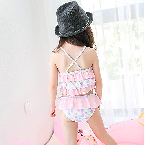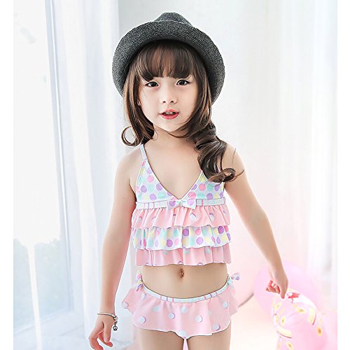 Girls パステルドット柄セパレート水着 UPF50+ (120/ピンク) 【CN-SW016】 子供用 女の子 スイムウエア