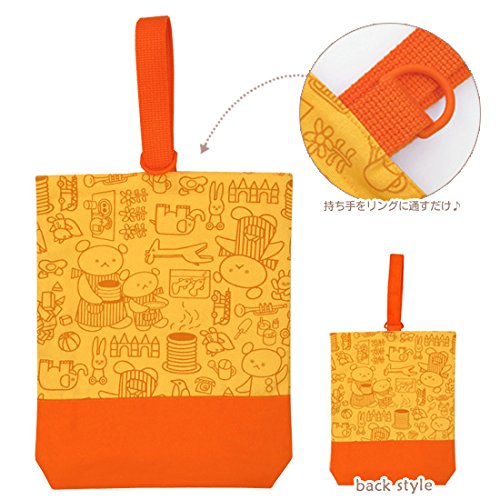 こぐまちゃんのかわいい総柄プリントのシューズケースが新登場!口は持ち手をリングに通すだけの簡単仕様。軽いのに、とっても丈夫です