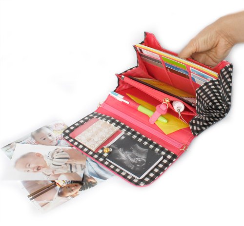 ママの声から生まれた使い易い工夫がいっぱい!の母子手帳ケースです。 中に入れられる母子手帳のサイズは約13cm×18cmまでとなります。 [1]たくさん入れても一目超然!取り出しやすく、見やすい、大容量なジャバラ式。 [2]取り外しできる取っ手が付いてるので、両手が使えてとっても便利。 赤ちゃんを抱っこしていても、ベビーカーで移動中も、大荷物のマザーズバッグでも! [3]カードポケットx18、外ポケット、チャックポケット、透明ポケットなど収納スペースがいっぱい。 [4]2段ホックで、たっぷり収納できる。 [5]汚れがつきにくいラミネートコート加工。