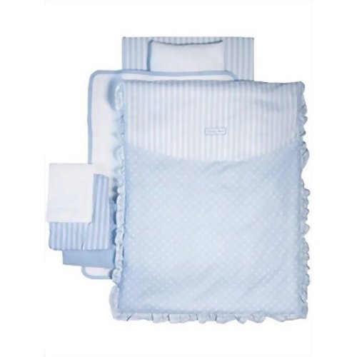 「ランデブーIIカバーリング布団セットブルー」は、こだわり尽くされた色とデザイン、そして機能を併せ持つベビー用寝具カバー9点セットです。掛け布団(ヌード)に使われているホロフィルIIとは、羽毛のように軽くて温かく、羽毛よりも洗濯しやすい特殊素材。固綿マットとまくらに使われているかるさーとは、マイナスイオンを生成する特殊機能を繊維に施したものなので、おやすみのかんきょうをいつも清潔に保ってくれます。