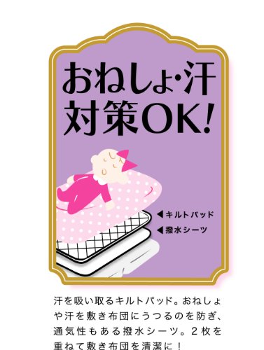 ・おねしょ&汗対策OK(汗を吸い取るキルトパッド。おねしょや汗が敷き布団に移るのを防ぎ、通気性もある撥水シーツ。2枚を重ねて敷き布団を清潔に保ちます)