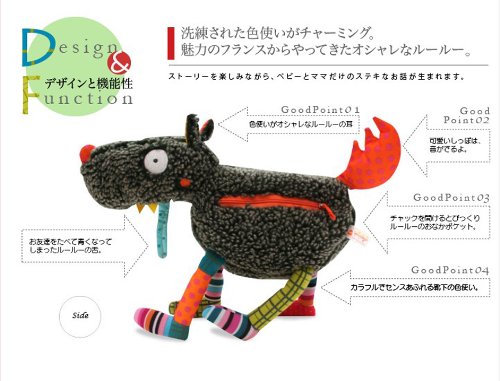 それは、お話の世界から飛び出したキュートなおおかみ。 野菜だいきらい。歯磨きだって大嫌い!悪い子だったルールーの舌が、ある日突然青くなってしまいました。さあ大変! 豊かなストーリーと、フランス独特のオシャレな色使いが際立つルールーシリーズは、様々な角度からベビーの感性を育てます。
