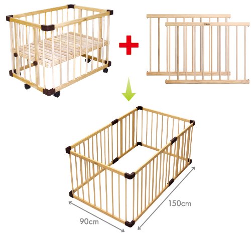 ミニジョイントベッド+ジョイントパネルで90cm×150cmのベビーサークルに