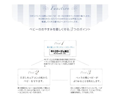- 赤ちゃんがベッドの柵に当たるのを防ぎ、冷暖房が直接あたらない効果もあるベッドガード