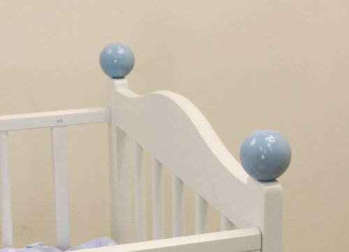 ベッドの四隅に付けられたブルーの玉の装飾が優雅なフォルムを引き立てます。