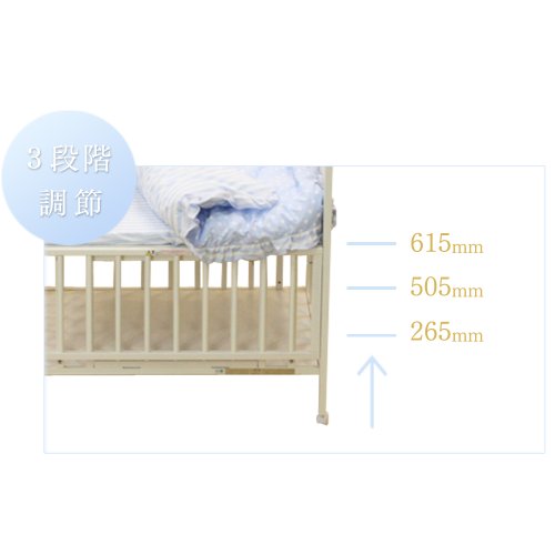 床板は3段階に調節可能です。つかまり立ちするようになってからも柵として使用できます。
