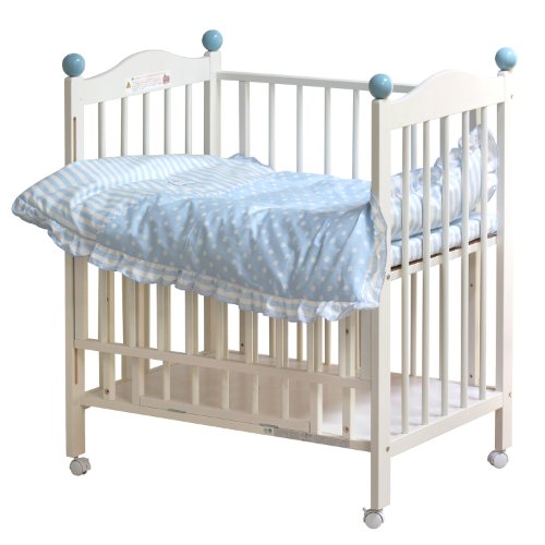 ・シンプルなデザインとブルーのアクセントが心地よくミックスした、優雅で使いやすいベビーベッドです。