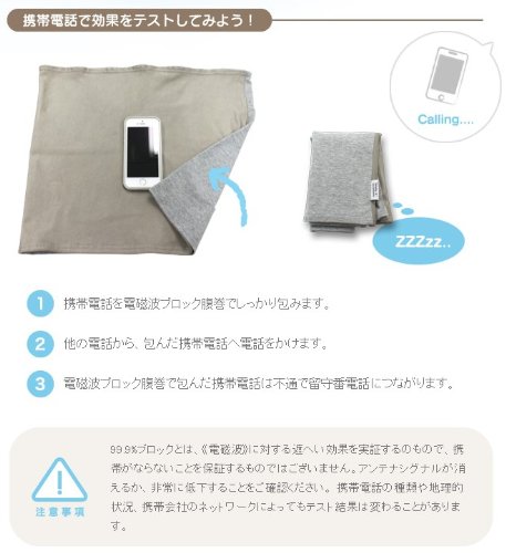 - 99.9%ブロックとは、【電磁波】に対する遮へい効果を実証するのもので携帯がならないことを保証するものではございません。携帯電話の種類や地理的状況、携帯会社のネットワークの種類によって、携帯電話が鳴る場合もございます。