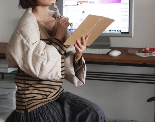 4 ボレロとして 袖を通せば手を動かしやすくデスクワークや洗い物のときなどに便利です。