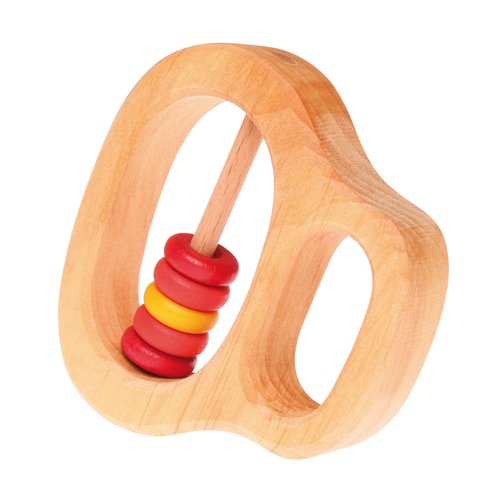 5個のリングがついた木製ラトル。素材はカエデ。オイル塗装仕上のシンプルなラトルです。