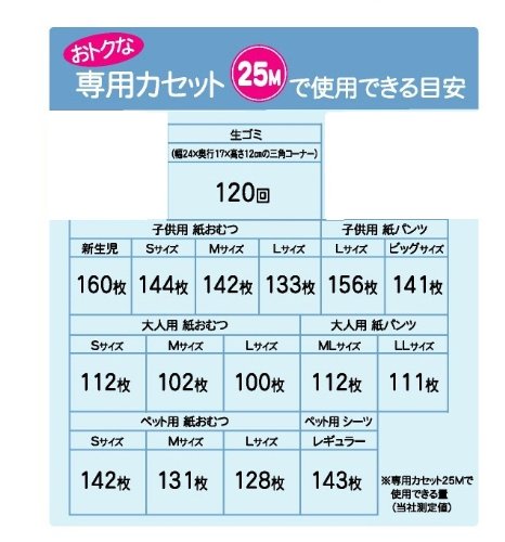 赤ちゃんや大人の紙おむつ、ペットの紙おむつやシーツ、生ごみ等のゴミを専用フィルムもしっかり密封できてたっぷり使用できます
