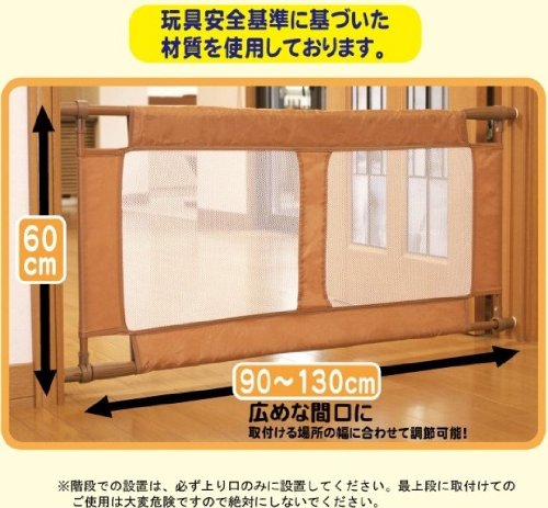 ◆部屋の間仕切りや階段の上り口、ベランダの入り口に簡単に取付けできます。◆間口の広さや場所に合わせてサイズも選べます。◆大人がまたぎやすい高さ60cm。◆ママにやさしい設計です。 / ■ 仕 様 ■本体サイズ(約):幅90~130×奥行4.3×高さ60cm 重量(約):2.3kg 材質・・・・パイプ部:スチール(粉体塗装) ・ネット部:ポリエステル、ナイロン 組立:お客様組立 / ※こちらの商品はお客様組立てとなっております