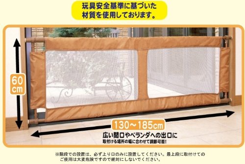 ◆部屋の間仕切りや階段の上り口、ベランダの入り口に簡単に取付けできます。◆間口の広さや場所に合わせてサイズも選べます。◆大人がまたぎやすい高さ60cm。◆ママにやさしい設計です。 / ■ 仕 様 ■本体サイズ(約):幅130~185×奥行4.3×高さ60cm 重量(約):3.0kg 材質・・・・パイプ部:スチール(粉体塗装) ・ネット部:ポリエステル、ナイロン 組立:お客様組立 /