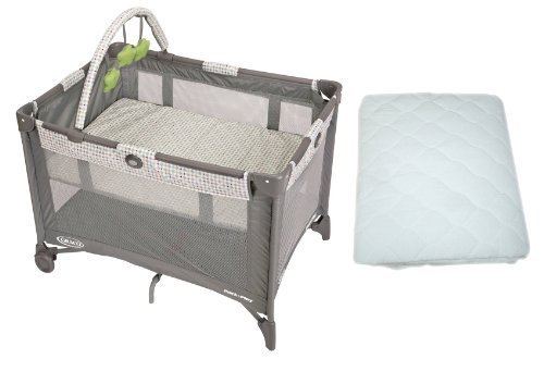 Durable frame makes this playard ideal for travel, Automatically folding feet and wheels allow for a more compact fold, Signature Graco push button fold makes closing your playard quick and hassle free, Face 100% Cotton; Middle 100% breathable polyester; Back 100% Waterproof vinyl, Waterproof size fitted protective portable/mini mattress cover