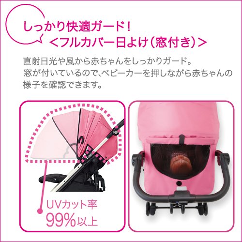 直射日光から風や赤ちゃんをしっかりガード。窓が付いているので、ベビーカーを押しながら赤ちゃんの様子を確認できます。(UVカット率99%以上)