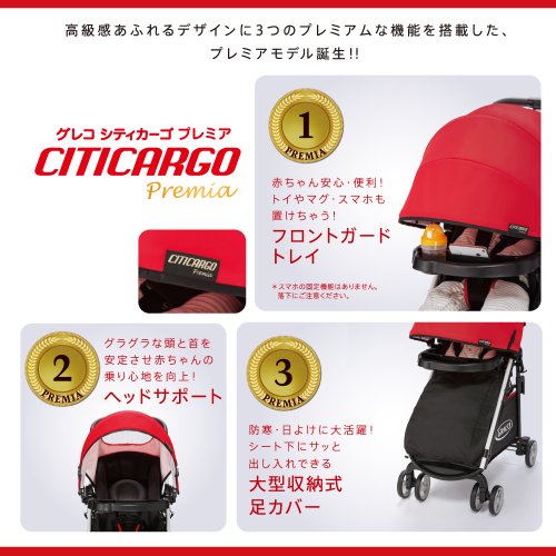 グレコ ハイシートベビーカー シティカーゴ プレミア プレミアレッドRD (生後1か月から使用可 & 買い物カゴ収納可 & トレー付 & 足カバー付) 【トラベルシステム対応】 67351