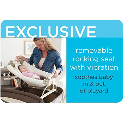・バシネット使用時 体重6.8Kgまで ・プレイヤート使用時 身長89cmまで You want to keep your newborn comfy and relaxed. Our Pack n' Play Playard with Cuddle Cove Rocking Seat features a soft, cozy little nest to help you do just that. This rocker includes fabrics that are soft on your newborn's skin, gentle vibration to calm & soothe your little one and carrying handles that allow you to move your little one from room to room. Diaper changes are easier, too, with the convenient changing table and baby basics organizer with three cubbies for all of baby's necessities.