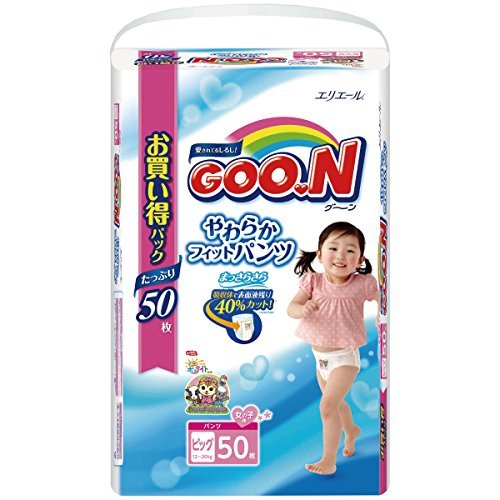 ふんわり赤ちゃんおしりふき 80枚プレゼント中 グーン 肌ごこちパンツ BIGサイズ 女の子 50枚 9入り(3合せ)