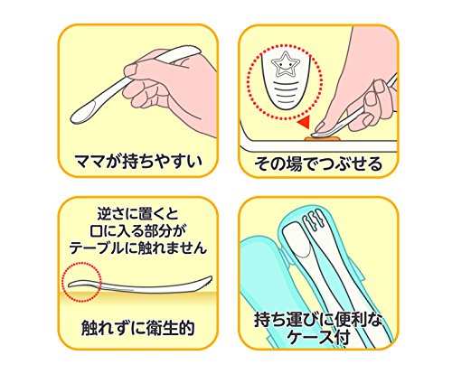 ●商品説明:赤ちゃんのお食事を考えたベビー用スプーンセットです。握りやすく、お皿の上で食材を潰すことができるマッシャー付きです。対象年齢は5ヶ月からです。