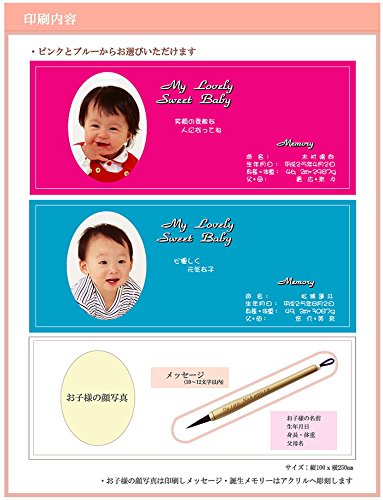 お子様のお写真、メッセージ、お子様のお名前、生年月日、出生時間、身長、体重、父母名を彫刻いたします。