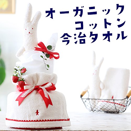 【名入れ刺繍可能】オーガニックコットンの今治タオル&ウサギのぬいぐるみのおむつケーキ 出産祝い 男の子 女の子