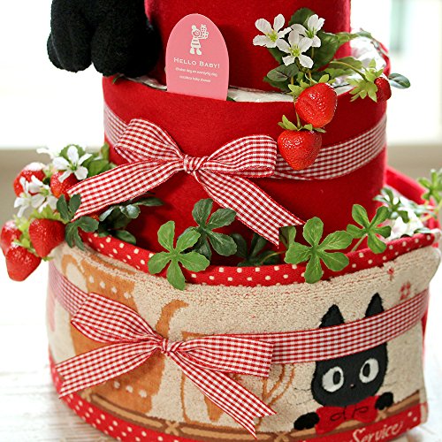パンパースの紙おむつSサイズ(産婦人科使用率No.1)を使用。 スタジオジブリの大人気作品「魔女の宅急便」のクロネコジジのおもちゃと、ハンドタオル付きのおむつケーキ☆ また、ウェディングでも使われている、高品質のアートフラワーが、お祝いムードを盛り上げてくれます。 紙おむつは透明のフィルムで包装されていますので、衛生的です。 一番小さい「新生児サイズ」ではなく、「Sサイズ」で作ってありますので、赤ちゃんがハイハイを始めるころまでは、おむつケーキをしばらく飾っておくことができます。受け取った方が分かりやすいよう、ラッピングの外側に紙おむつのサイズが書かれたシールが貼付されております。 ※当店では明細書の発行は行っておりません。(アマゾンのご注文履歴ページより「領収書/購入明細書」の印刷が可能です)
