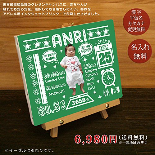 - 絵画用キャンバスに赤ちゃんのお写真、名前、誕生日、出生時間、体重、身長などをプリントした世界に一つのメモリアルボードです。