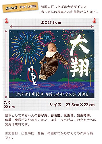 - 絵画用キャンバスに赤ちゃんのお写真、名前、誕生日、出生時間、体重、身長などをプリントした大漁旗デザインのメモリアルキャンバスです。