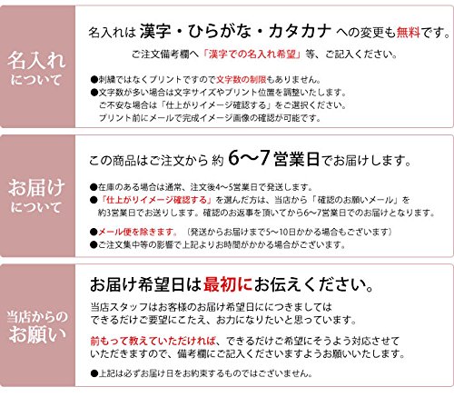 【重要】ご注文確認後、当店ココロコより「お名前等の情報につきまして」という件名にてメールをお送り致します。 そのメールの内容を必ずご確認頂きご返信下さい。 3日以内にご返信頂けない場合はご注文をキャンセルさせて頂く場合がございますので予めご了承ください。(名入れ作業がございますので、ご連絡を頂いてからお届けまで約7日程お時間をいただいております。)