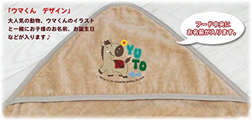 出産祝い 名入れ 名前入り おくるみ アフガン フード付き 赤ちゃんに優しい 日本製 今治 動物 うま