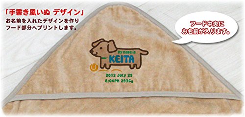 出産祝い 名入れ 名前入り おくるみ アフガン フード付き 赤ちゃんに優しい 日本製 今治 手書き風 いぬ