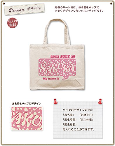 名入れ 名前入り レッスンバッグ スクエアトート キャンバス地 ピンクハート Lサイズ(高さ30×幅36×マチ14cm)