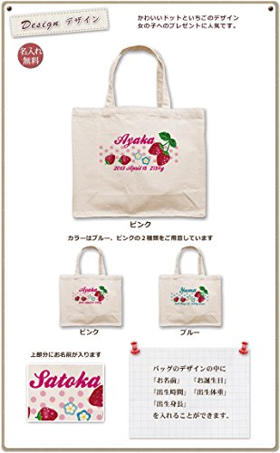 名入れ 名前入り レッスンバッグ スクエアトート キャンバス地 いちご&ドット Lサイズ(高さ30×幅36×マチ14cm)
