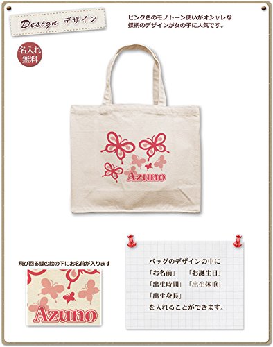 名入れ 名前入り レッスンバッグ スクエアトート キャンバス地 バタフライ Lサイズ(高さ30×幅36×マチ14cm)