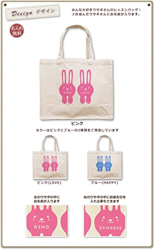 名入れ 名前入り レッスンバッグ スクエアトート キャンバス地 うさぎA Lサイズ(高さ30×幅36×マチ14cm)