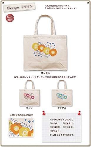 名入れ 名前入り レッスンバッグ スクエアトート キャンバス地 北欧風フラワー Lサイズ(高さ30×幅36×マチ14cm)
