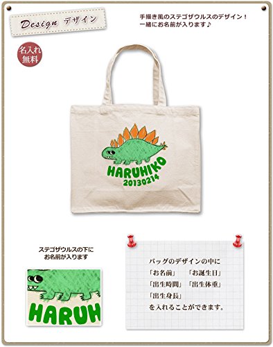 名入れ 名前入り レッスンバッグ スクエアトート キャンバス地 ステゴサウルス Lサイズ(高さ30×幅36×マチ14cm)