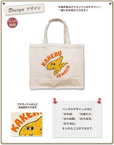 名入れ 名前入り レッスンバッグ スクエアトート キャンバス地 プテラノドン Lサイズ(高さ30×幅36×マチ14cm)