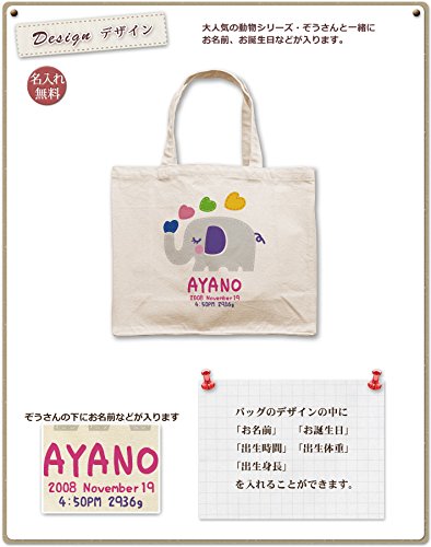 名入れ 名前入り レッスンバッグ スクエアトート キャンバス地 ぞうさん Lサイズ(高さ30×幅36×マチ14cm)