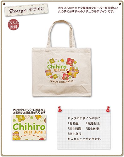 名入れ 名前入り レッスンバッグ スクエアトート キャンバス地 クローバー Lサイズ(高さ30×幅36×マチ14cm)
