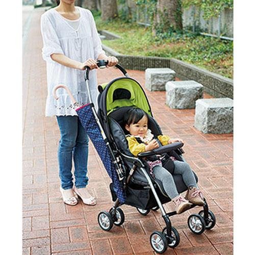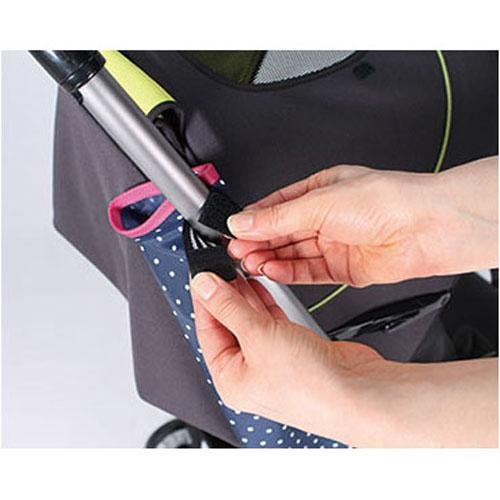 面ファスナーで2ヶ所を固定し、ベビーカーに取り付けます。